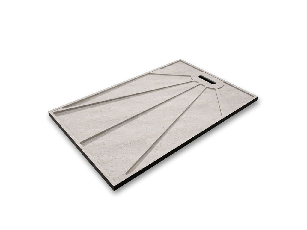 A tálca kiváló minőségű ásványi kompozitból készült, ami szilárdságot és ellenállást biztosít a karcolásokkal, a nedvességgel és a vegyszerekkel szemben. Ellenáll a tálca felületére eső tárgyaknak is. Ez hosszú élettartamot biztosít. A felület nagyon könnyen karbantartható, és tisztítható hagyományos tisztítószerekkel és puha szivaccsal. Nem engedi át a vizet és más folyadékokat, amelyek nem érik el a tálca felületét, ahol mikroorganizmusok, penész és szennyeződések keletkezhetnek. A felület nagyon ellenálló a hőmérséklet-változásokkal szemben, így a tálca évekig szolgálni fog anélkül, hogy cserére lenne szükség. A felület csúszásgátló, ami az egyik legfontosabb tényező a tálcák kiválasztásakor.