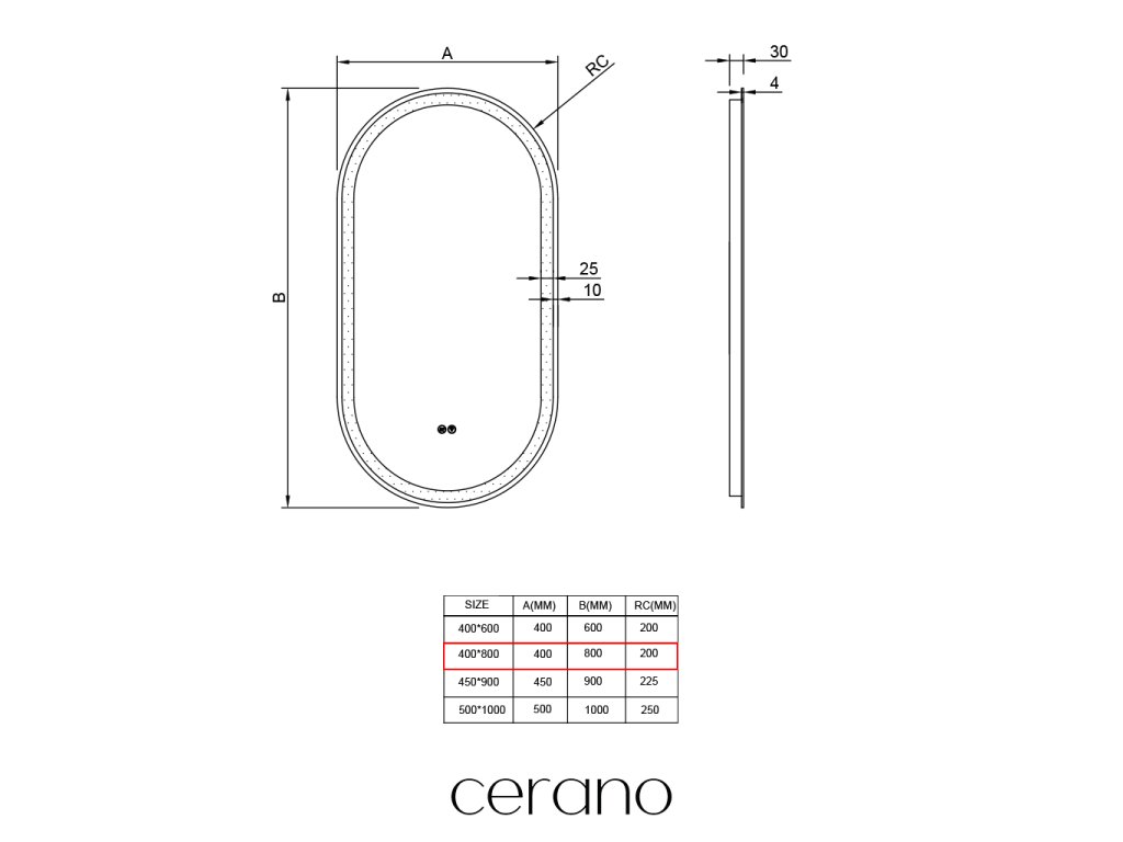 CERANO - Ayvo LED fürdőszobai tükör - 40x80 cm