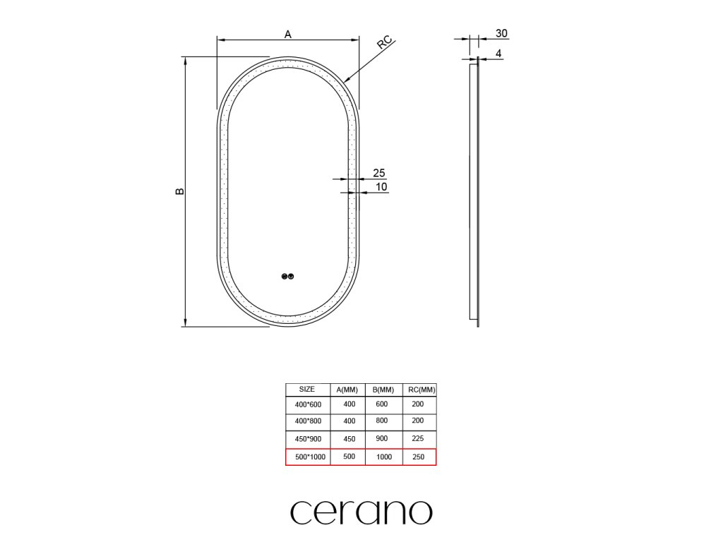 CERANO - Ayvo LED fürdőszobai tükör - 50x100 cm