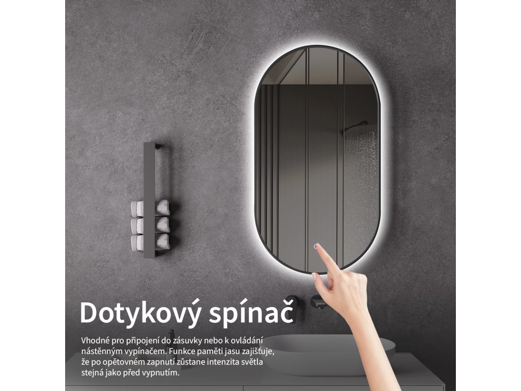A LED-es tükör fényerőszabályzóval rendelkezik, amellyel pontosan beállíthatja a fény intenzitását. Egyszerűen érintse meg az érzékelőmezőt a lámpa be- vagy kikapcsolásához. Tartsa az ujját a kívánt fényerő beállításához - a fény folyamatosan növekszik vagy csökken, hogy mindig az Ön igényeinek megfelelő ideális megvilágítást biztosítsa.