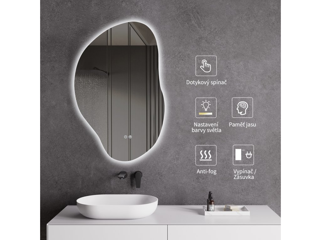 A tükör LED világítással van felszerelve, amelynek fényszíne állítható - 3000 K-től (meleg) 6500 K-ig (semleges). A színeket könnyedén válthatja a tükör felületén található érintőgombbal. Intenzív és erős fényt biztosít a részletes ápoláshoz, valamint kellemes, lágy megvilágítást a pihenéshez. A széles színhőmérséklet-tartománynak köszönhetően könnyedén az aktuális igényeihez igazíthatja a hangulatot.