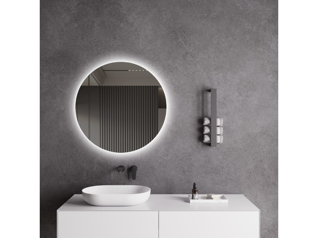 A tükör hátulról LED háttérvilágítással van felszerelve, amely a fal felé világít, és lágy fényhatást hoz létre a teljes kerület mentén. A szórt fény a keret és a tükör közötti térből indul ki, nem vakít, és biztosítja a fürdőszoba egyenletes és kellemes megvilágítását.