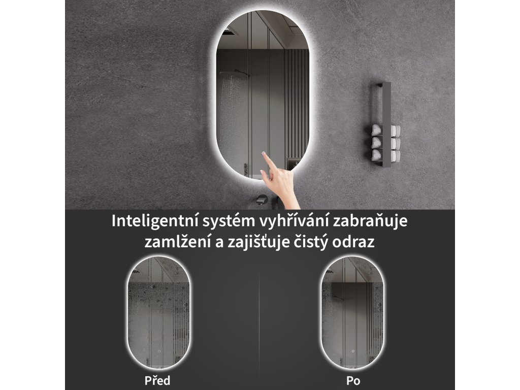 A LED-es tükör fényerőszabályzóval rendelkezik, amellyel pontosan beállíthatja a fény intenzitását. Egyszerűen érintse meg az érzékelőmezőt a lámpa be- vagy kikapcsolásához. Tartsa az ujját a kívánt fényerő beállításához - a fény folyamatosan növekszik vagy csökken, hogy mindig az Ön igényeinek megfelelő ideális megvilágítást biztosítsa.