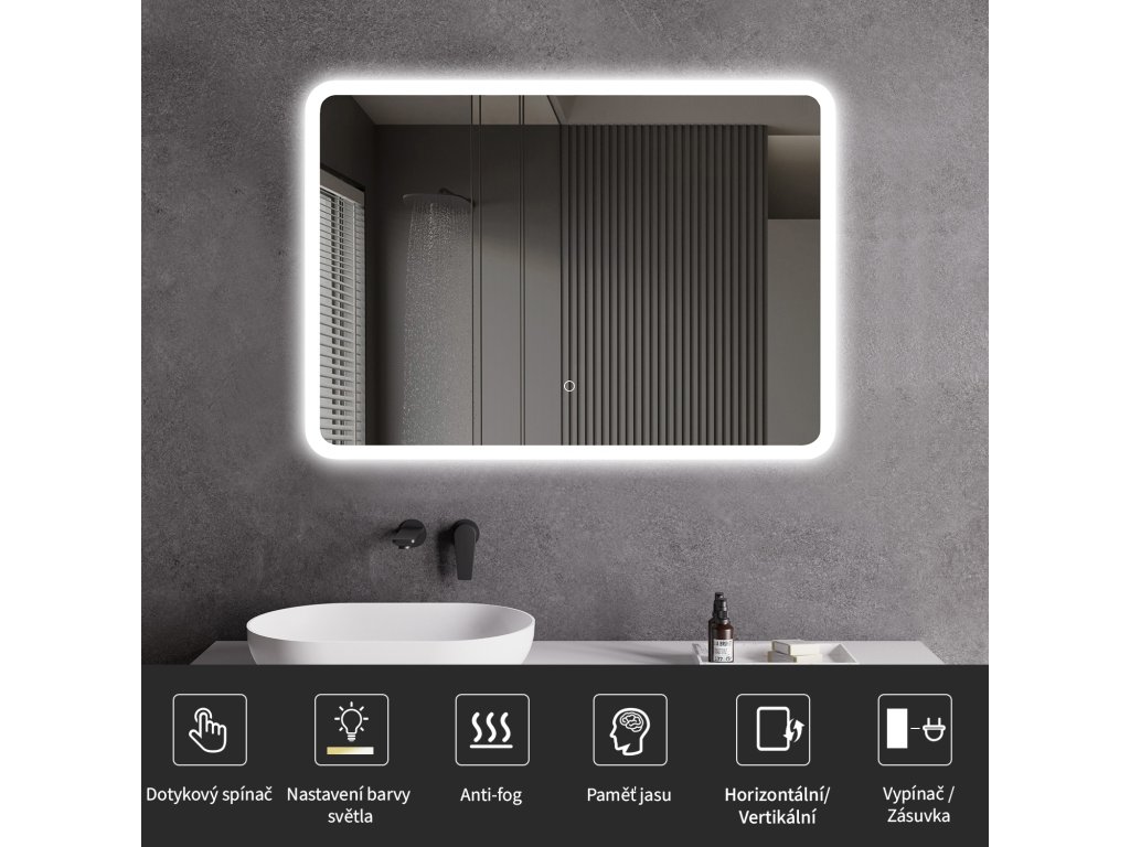 A tükör LED világítással van felszerelve, amelynek fényszíne állítható - 3000 K-től (meleg) 6000 K-ig (semleges). A színeket könnyedén válthatja a tükör felületén található érintőgombbal. Intenzív és erős fényt biztosít a részletes ápoláshoz, valamint kellemes, lágy fényt a pihenéshez. A széles színhőmérséklet-tartománynak köszönhetően könnyedén az aktuális igényeihez igazíthatja a hangulatot.