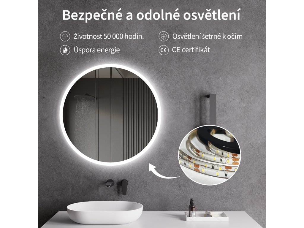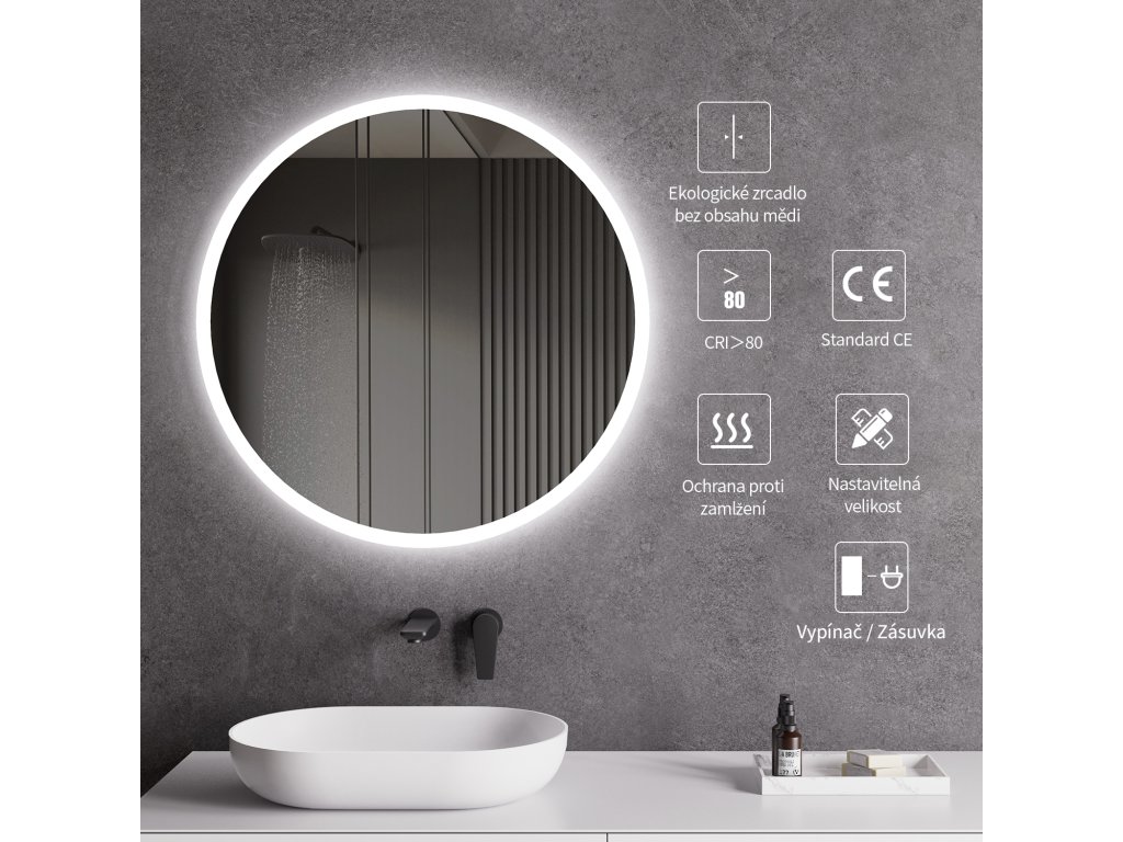 CERANO - Lavoro LED fürdőszobai tükör - Ø60 cm