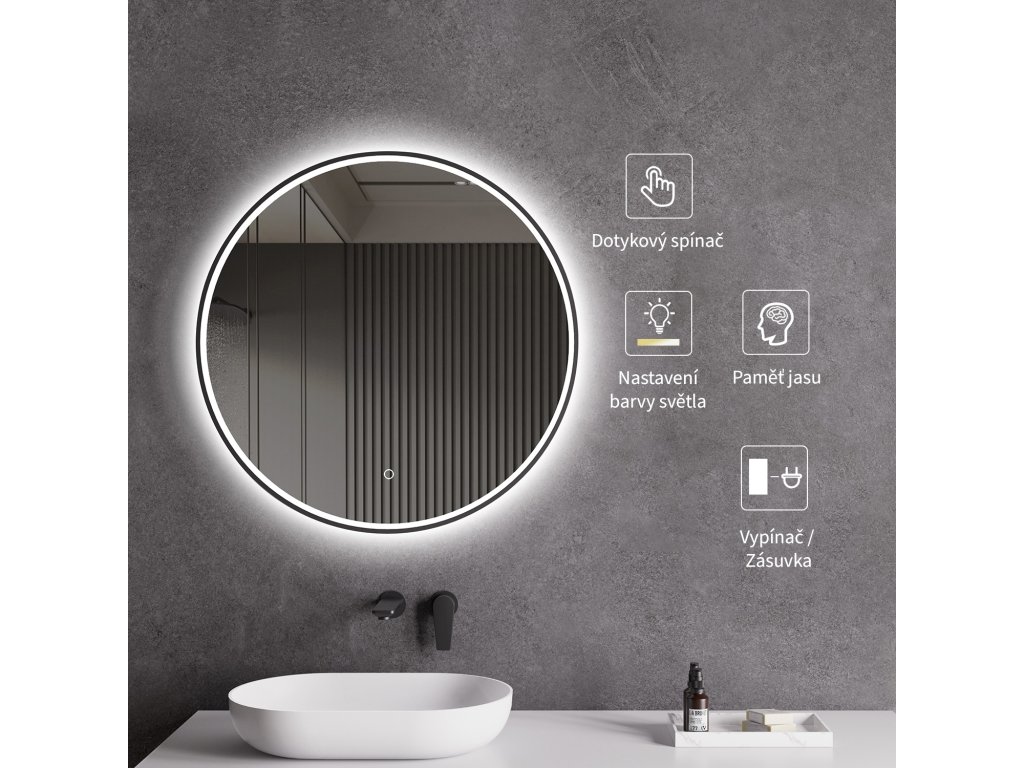 A tükör LED világítással van felszerelve, amelynek fényszíne állítható - 3000 K-től (meleg) 6000 K-ig (semleges). A színeket könnyedén válthatja a tükör felületén található érintőgombbal. Intenzív és erős fényt biztosít a részletes ápoláshoz, valamint kellemes, lágy fényt a pihenéshez. A széles színhőmérséklet-tartománynak köszönhetően könnyedén az aktuális igényeihez igazíthatja a hangulatot.