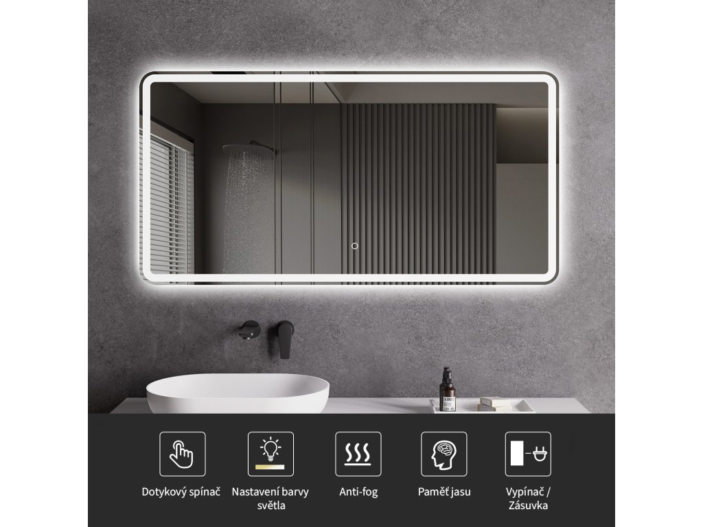 A tükör LED világítással van felszerelve, amelynek fényszíne állítható - 3000 K-től (meleg) 6000 K-ig (semleges). A színeket könnyedén válthatja a tükör felületén található érintőgombbal. Intenzív és erős fényt biztosít a részletes ápoláshoz, valamint kellemes, lágy fényt a pihenéshez. A széles színhőmérséklet-tartománynak köszönhetően könnyedén az aktuális igényeihez igazíthatja a hangulatot.