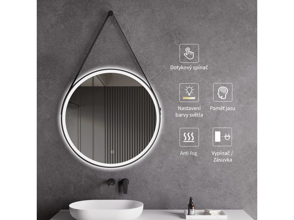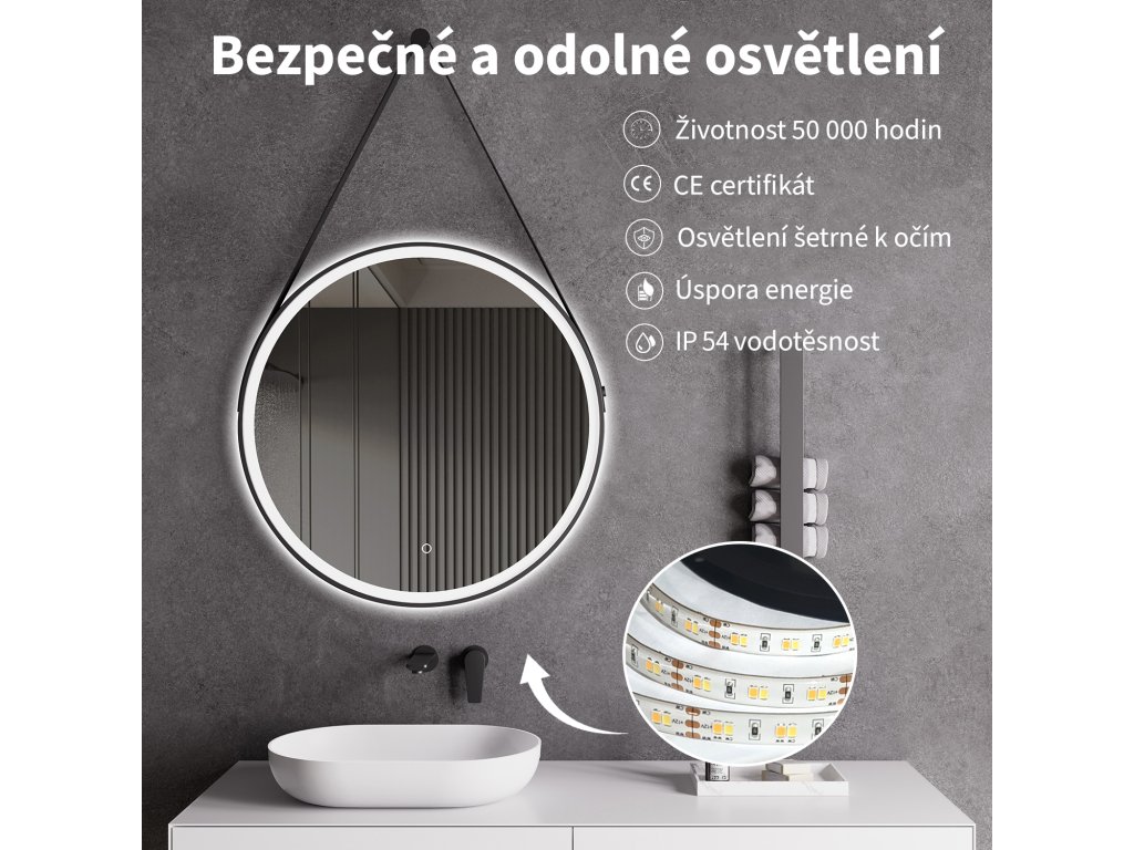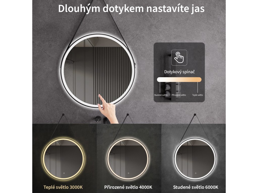 A tükör LED világítással van felszerelve, amelynek fényszíne állítható - 3000 K-től (meleg) 6000 K-ig (semleges). A színeket könnyedén válthatja a tükör felületén található érintőgombbal. Intenzív és erős fényt biztosít a részletes ápoláshoz, valamint kellemes, lágy fényt a pihenéshez. A széles színhőmérséklet-tartománynak köszönhetően könnyedén az aktuális igényeihez igazíthatja a hangulatot.