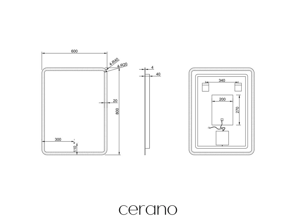 A tükör hátulján található egy csatlakozó a tápegységhez való csatlakoztatáshoz. Ez egy praktikus megoldás, amely lehetővé teszi a kábelek elrejtését a tükör mögé, biztosítva a fürdőszoba esztétikus és rendezett megjelenését.