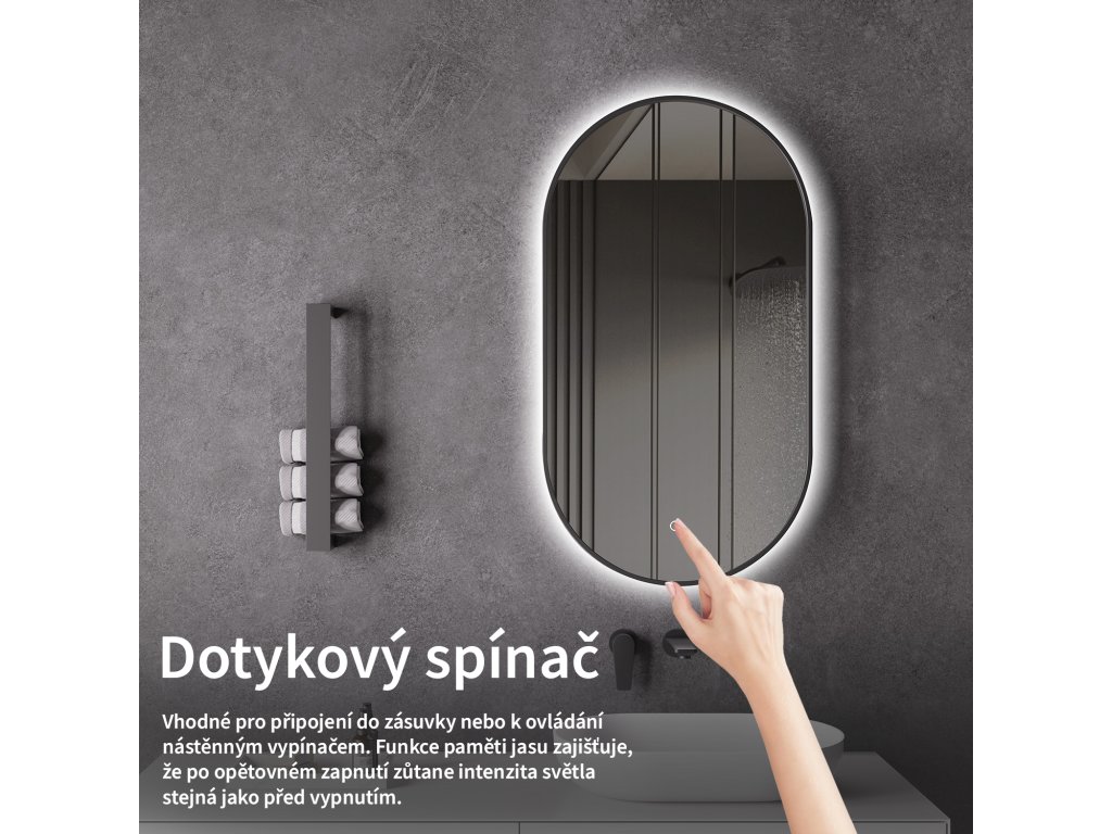 A LED-es tükör fényerőszabályzóval rendelkezik, amellyel pontosan beállíthatja a fény intenzitását. Egyszerűen érintse meg az érzékelőmezőt a lámpa be- vagy kikapcsolásához. Tartsa az ujját a kívánt fényerő beállításához - a fény folyamatosan növekszik vagy csökken, hogy mindig az Ön igényeinek megfelelő ideális megvilágítást biztosítsa.