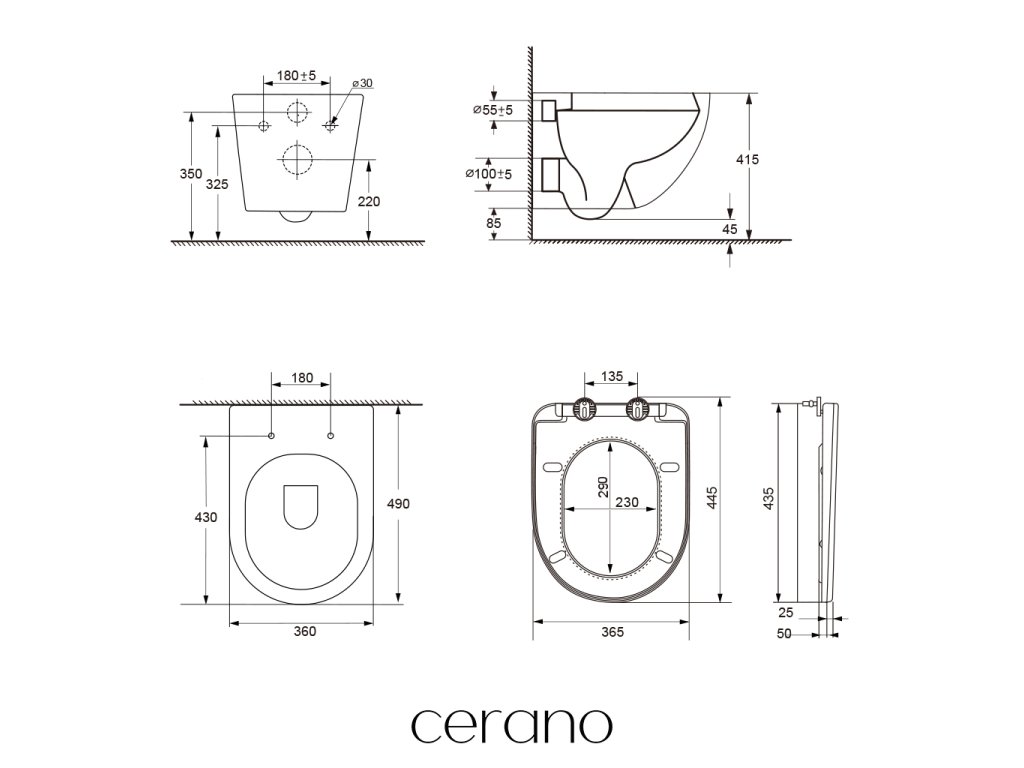 A Cerano fali WC-k könnyen felszerelhetők, és a szabványos rögzítési távolságnak köszönhetően kompatibilisek olyan márkák Cerano moduljaival, mint a Geberit, Grohe, Alcadrain, Jika, Tece stb.