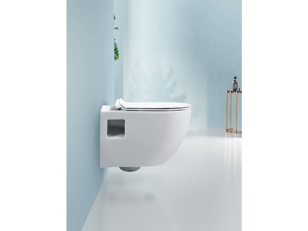 A perem nélküli WC-öblítési technológia azt jelenti, hogy a WC-csésze belsejében nincs a hagyományos „perem” vagy „él”, ahol a víz általában kifolyik öblítéskor. Ehelyett a víz a lehető leghatékonyabban öblíti át a csésze teljes belső felületét. Ez a technológia megakadályozza, hogy a szennyeződés és a baktériumok felhalmozódjanak a perem alatt, így könnyebbé teszi a karbantartást és a tisztítást, valamint higiénikusabb WC-t eredményez.