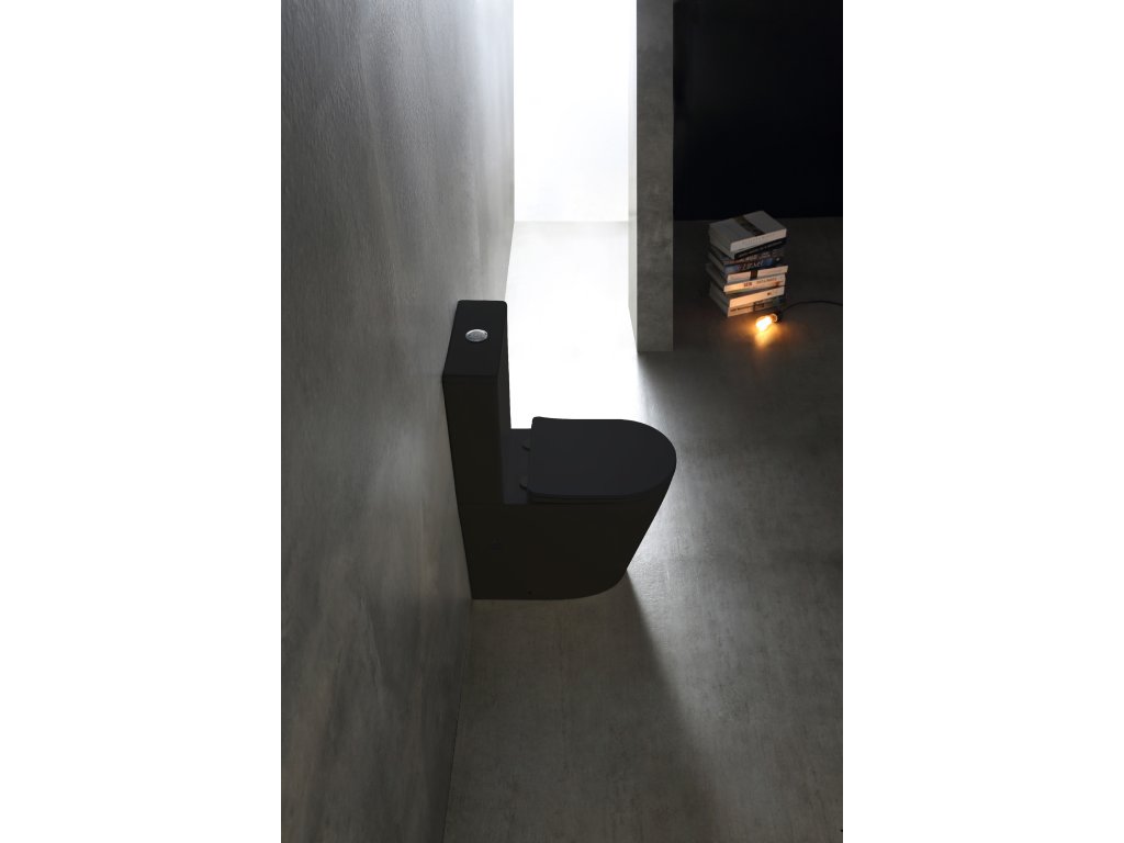 CERANO - Carlito kombinált WC, perem nélküli + UF ülőke - alsó/hátsó lefolyó - matt fekete - 61x36,5 cm