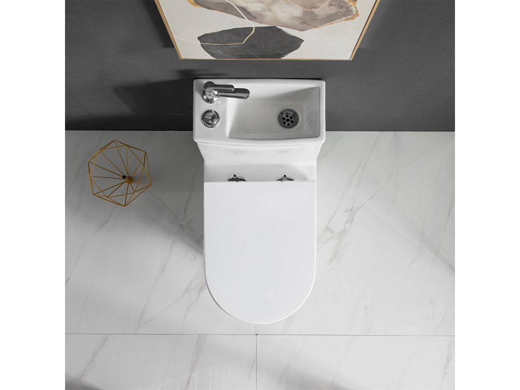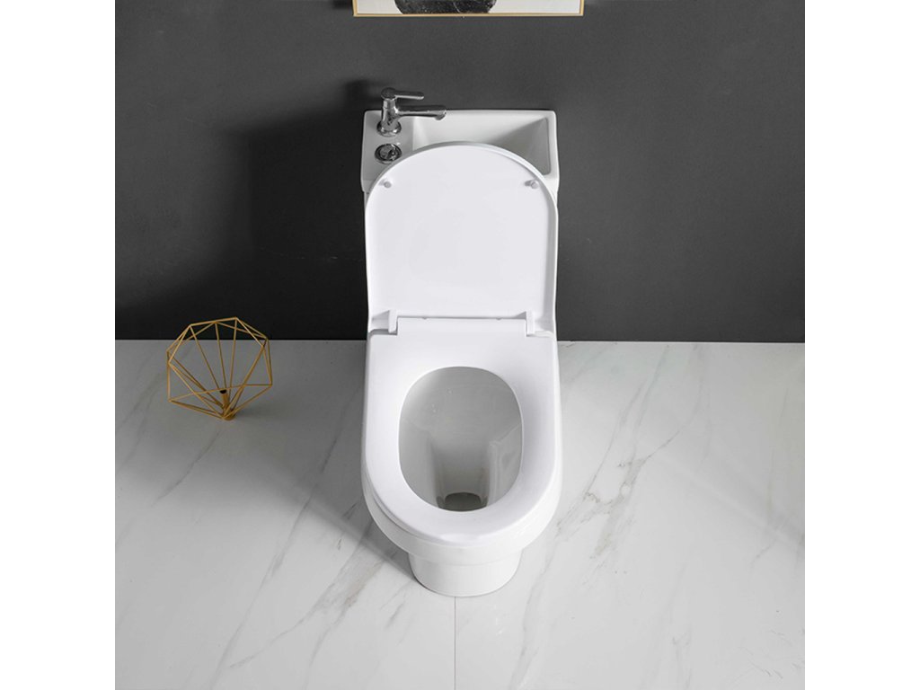 CERANO - WC kombináció Hygisink mosdóval, perem nélküli szegély + UF ülőke - alsó/hátsó lefolyó - fényes fehér - 71,5x36 cm