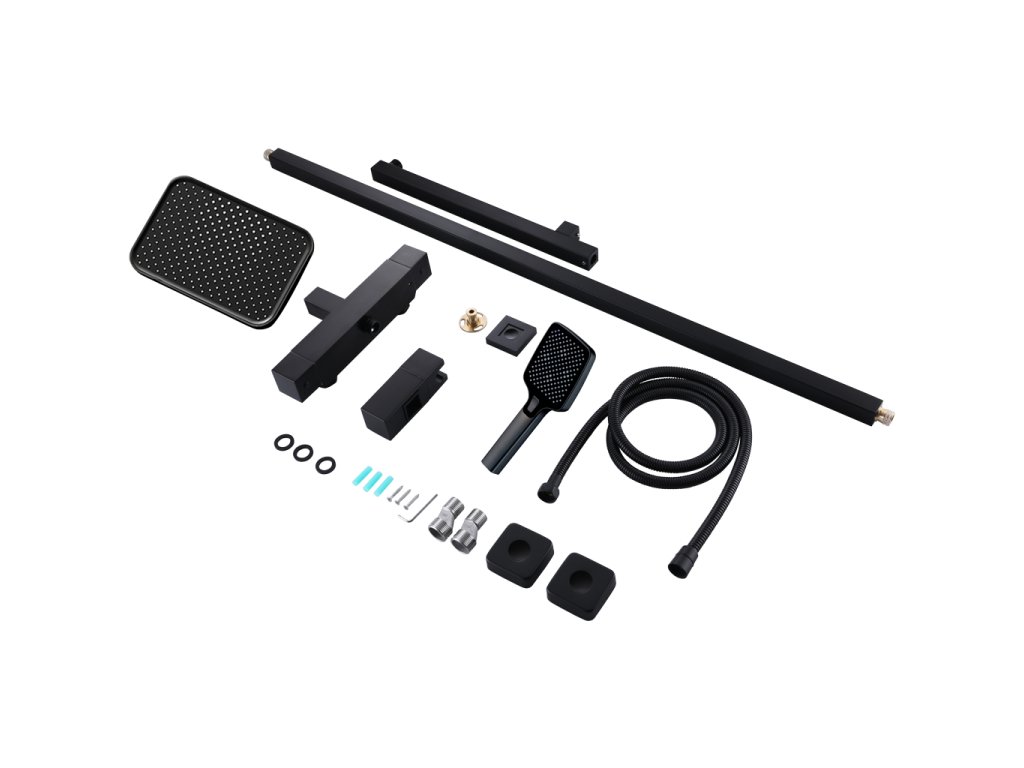 A fejzuhany a szett központi eleme, amely frissítő élményt nyújt. Kialakításának köszönhetően a víz egyenletesen oszlik el, és tökéletesen lefedi az egész testet. Ezenkívül a termosztatikus keverő segítségével könnyen beállítható a víz hőmérséklete és erőssége. A kézizuhany ezzel szemben nagyobb kontrollt biztosít a zuhany felett. Könnyen megfoghatja, és a vizet oda irányíthatja, ahová szüksége van rá. A zuhanycső hajlításnak és nyújtásnak ellenálló anyagból készült.