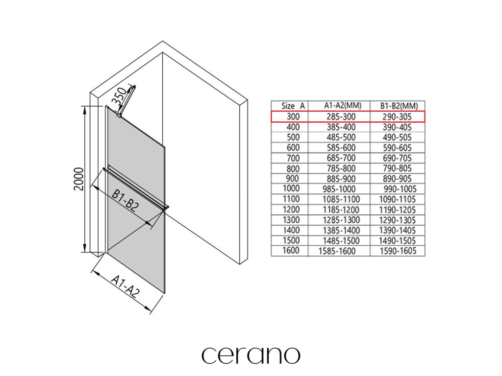 Ezen a sorozaton belül széles méretválasztékot kínálunk, hogy kielégítsük ügyfeleink különböző igényeit. Minden Cerano zuhanykabin, ajtó és paraván teljesen kompatibilis az azonos méretű Cerano zuhanytálcákkal , biztosítva a zökkenőmentes telepítést és a tökéletes összehangolást. Ezenkívül a zuhanykabin rugalmasan beszerelhető - akár a hozzá illő zuhanytálcára, akár közvetlenül a padlóra, az Ön preferenciáitól és a fürdőszobai lehetőségektől függően.