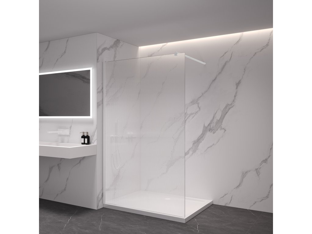 CERANO - Zuhanykabin Onyx kerek bal/jobb - 8 mm - kerek tartó - matt fehér, rovátkolt üveg - 70x200 cm