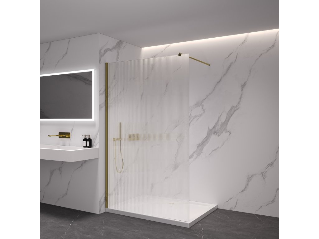 CERANO - Zuhanykabin Onyx kerek bal/jobb - 8 mm - kerek tartó - szálcsiszolt arany, rovátkolt üveg - 70x200 cm