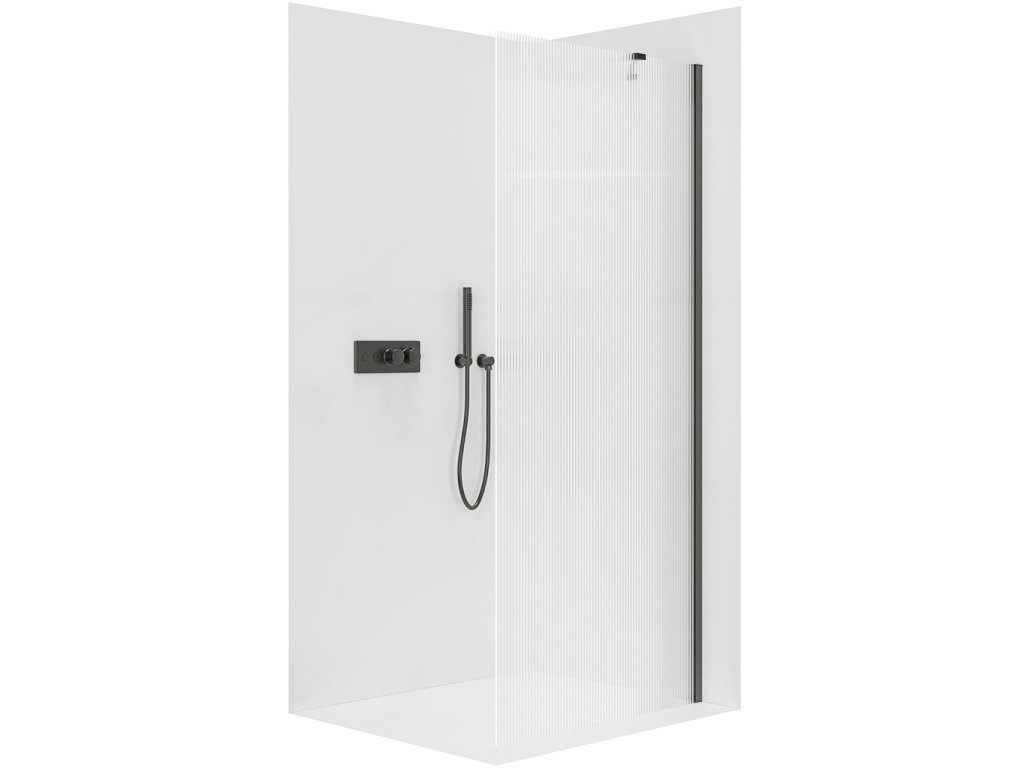 CERANO - Zuhanykabin Onyx YL/P - 8 mm - matt fekete, rovátkolt üveg - 70x200 cm