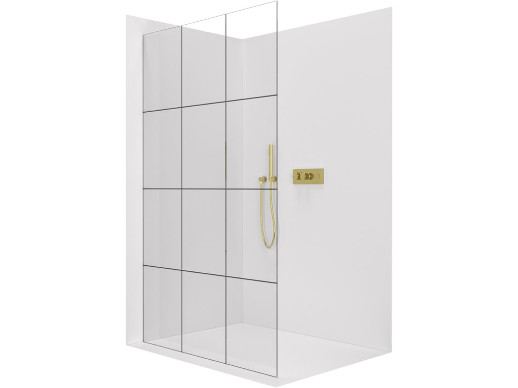 CERANO - Walk-in Crystal bal/jobb zuhanykabin - 8 mm - merevítő nélküli rendszer - szálcsiszolt arany, ipari üveg - 90x200 cm