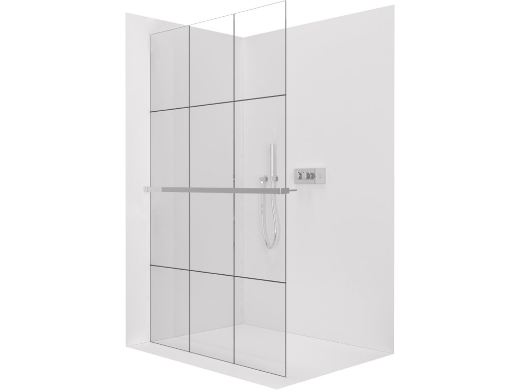 A zuhanykabin kialakítása lehetővé teszi a rejtett üvegezést zavaró merevítők nélkül, a teljesen vagy részben süllyeszthető profilok (14 mm, csempébe vagy térkőbe) segítségével . Az eredmény egy letisztult és elegáns megoldás , amely kiemeli a fürdőszoba modern megjelenését , és maximális vizuális világosságot biztosít a térben .