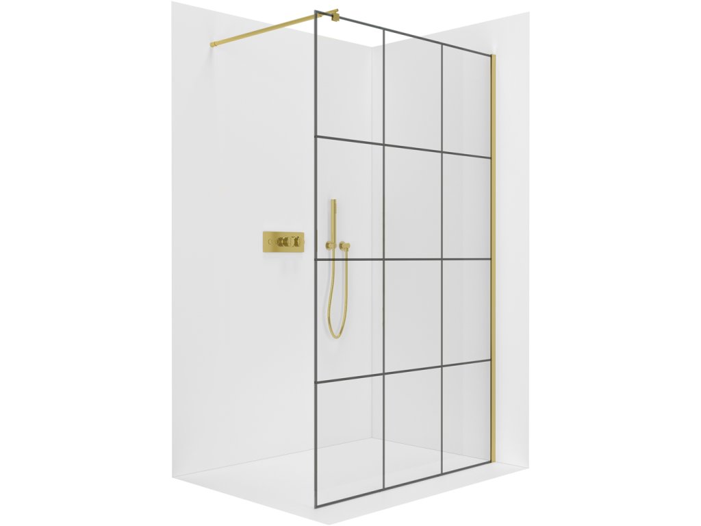 CERANO - Walk-in Onyx kerek bal/jobb zuhanykabin - 8 mm - kerek tartó - szálcsiszolt arany, ipari üveg - 90x200 cm