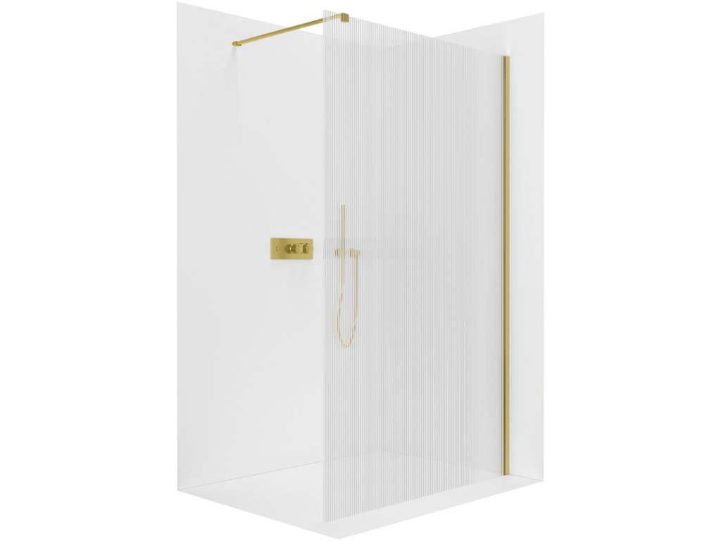 CERANO - Zuhanykabin Onyx Cube bal/jobb - 8 mm - négyzet alakú tartó - arany, rovátkolt üveg - 90x200 cm