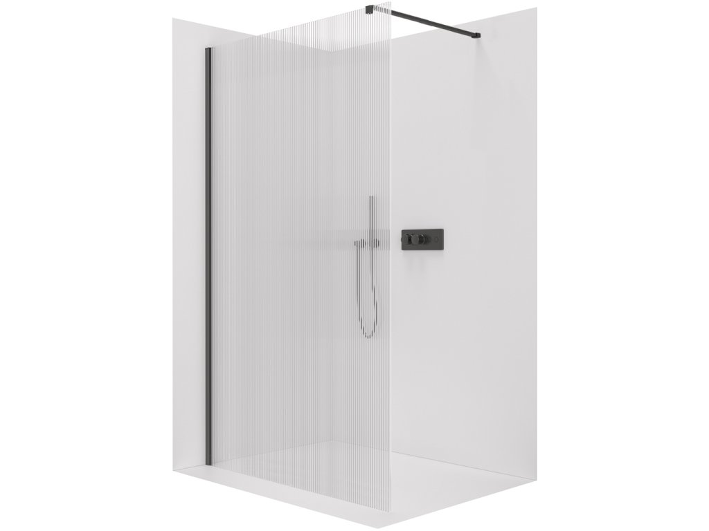 CERANO - Zuhanykabin Onyx Cube bal/jobb - 8 mm - négyzet alakú tartó - matt fekete, rovátkolt üveg - 90x200 cm