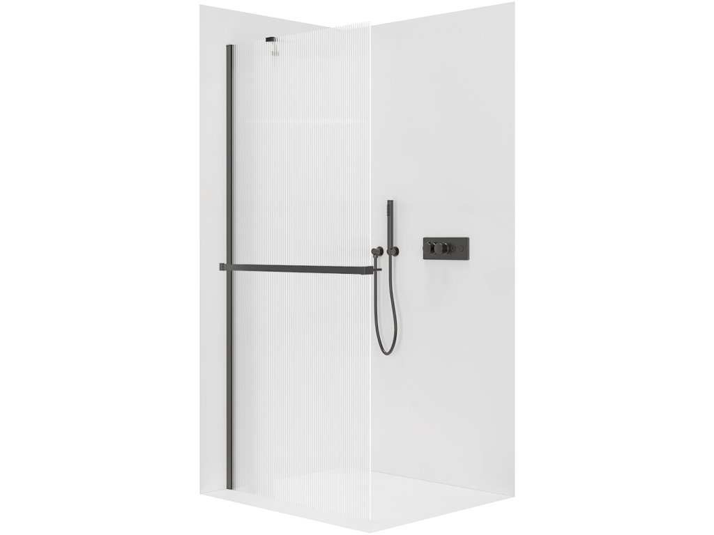 CERANO - Zuhanykabin Onyx YL/P - 8 mm + polc/törölközőtartó - matt fekete, rovátkolt üveg - 90x200 cm