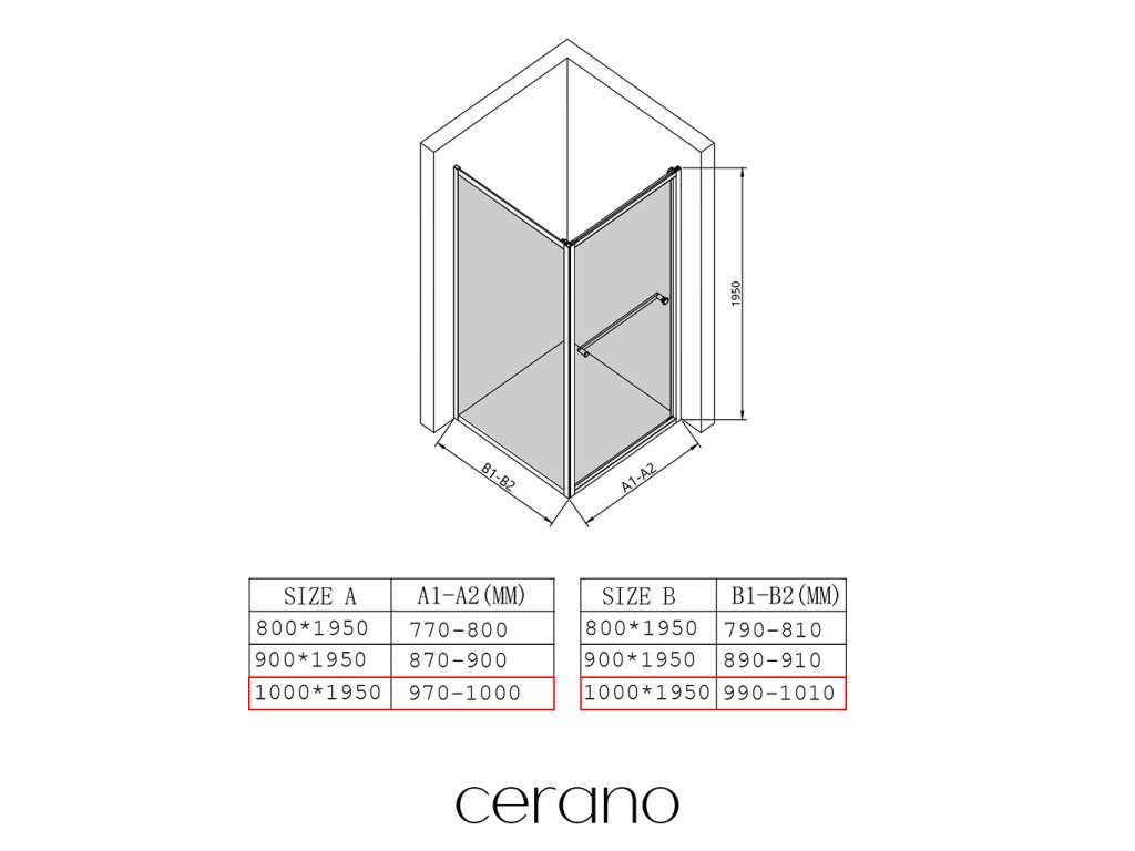 CERANO - Versaro B/J zuhanykabin - 6 mm - matt fekete, átlátszó üveg - 100x100 cm - szárny