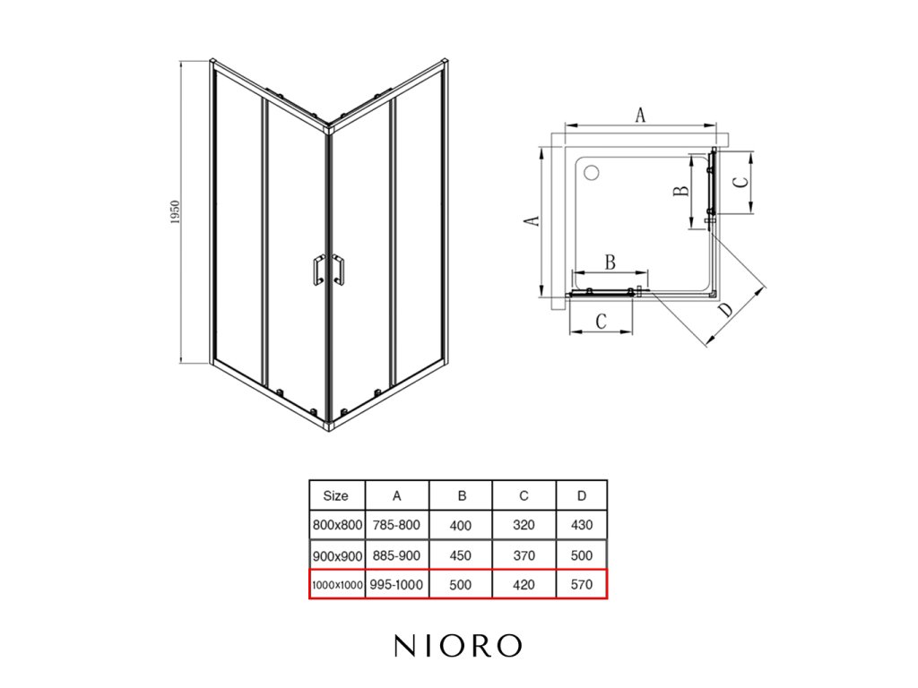 NIORO - Fabrizio B/J zuhanykabin + FastInstall - króm, átlátszó üveg - 100x100x190 cm - tolóajtó