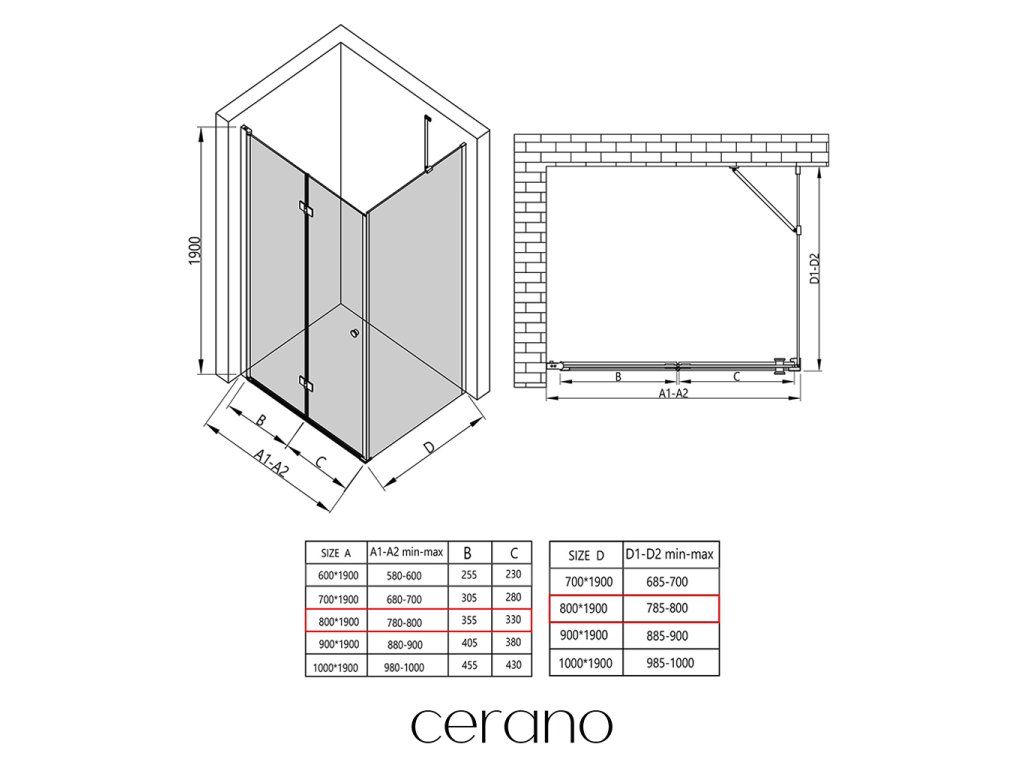 Ezen a sorozaton belül széles méretválasztékot kínálunk, hogy kielégítsük ügyfeleink különböző igényeit. Minden Cerano zuhanykabin, ajtó és paraván teljesen kompatibilis az azonos méretű Cerano zuhanytálcákkal , biztosítva a zökkenőmentes telepítést és a tökéletes összehangolást. Ezenkívül a zuhanykabin rugalmasan beszerelhető - akár a hozzá illő zuhanytálcára, akár közvetlenül a padlóra, az Ön preferenciáitól és a fürdőszobai lehetőségektől függően.
