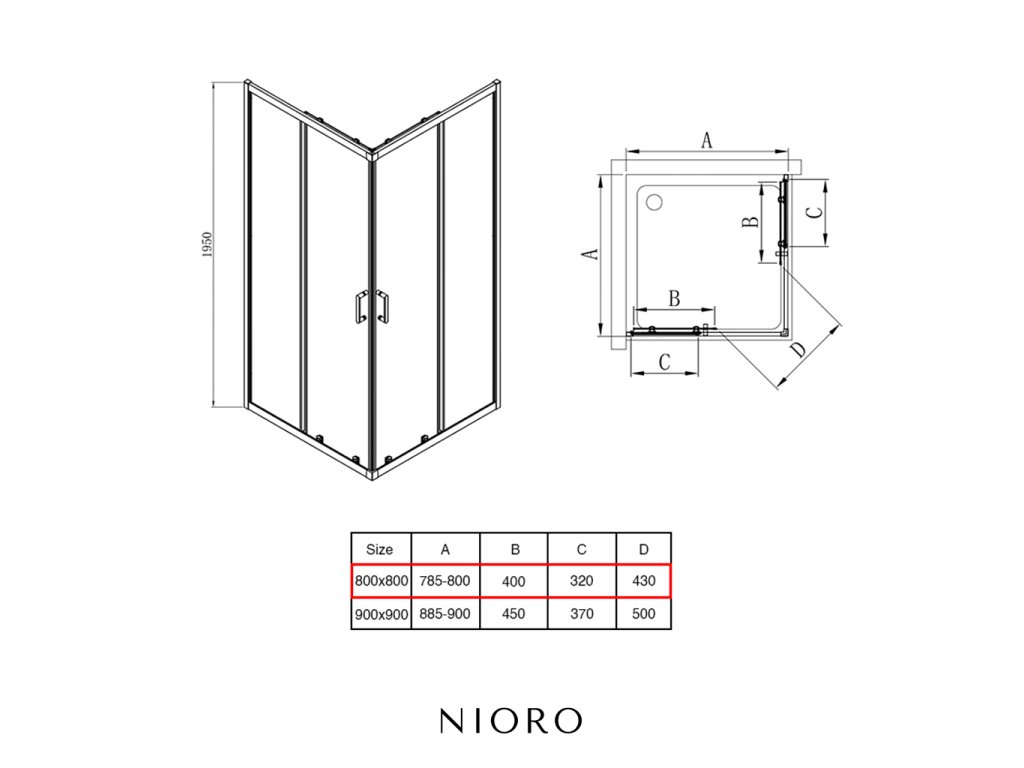 NIORO - Zuhanykabin Fabrizio B/J + FastInstall - 5 mm - króm, átlátszó üveg - 80x80x190 cm - tolóajtó